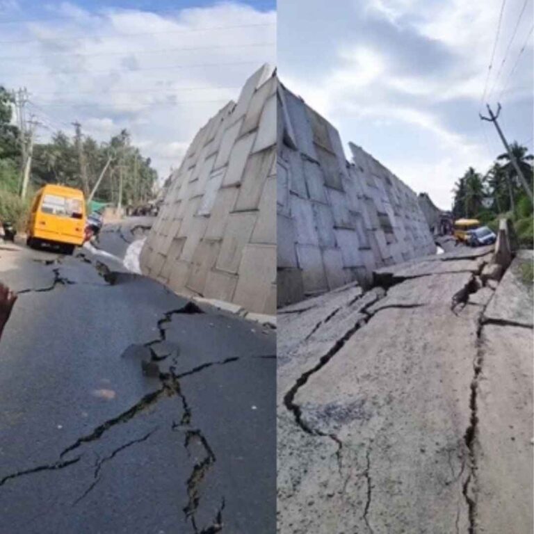 കൊല്ലത്ത് നിർമാണത്തിലിരുന്ന ദേശീയപാത തകർന്നുവീണു